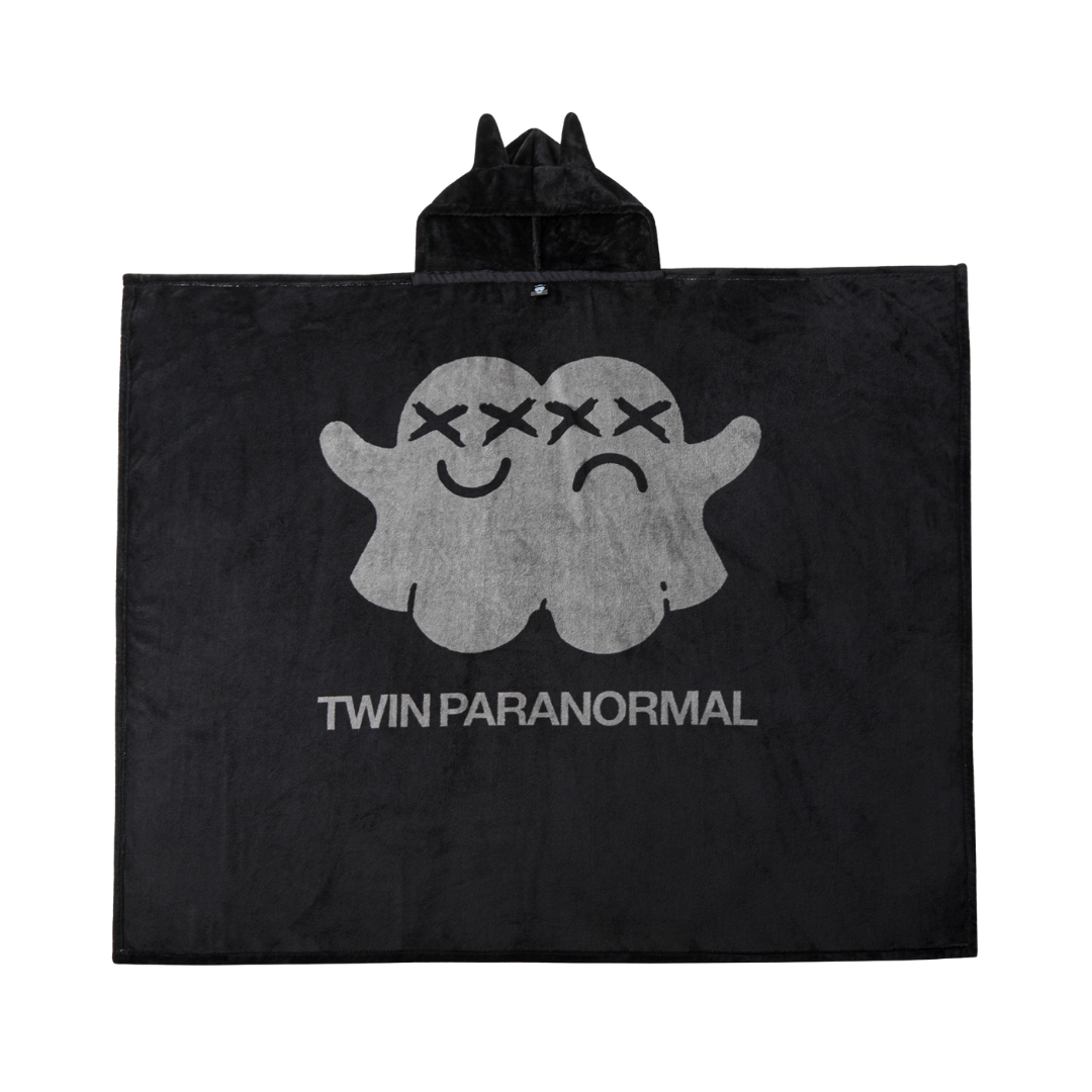 The Possession Blanket is built for late-night investigations and colder haunt nights. Featuring a hood with devil horns and the Twin Paranormal logo. Heavy, soft, and unmistakably theirs, it’s the kind of blanket you wrap yourself in when the temperature drops and the activity picks up.