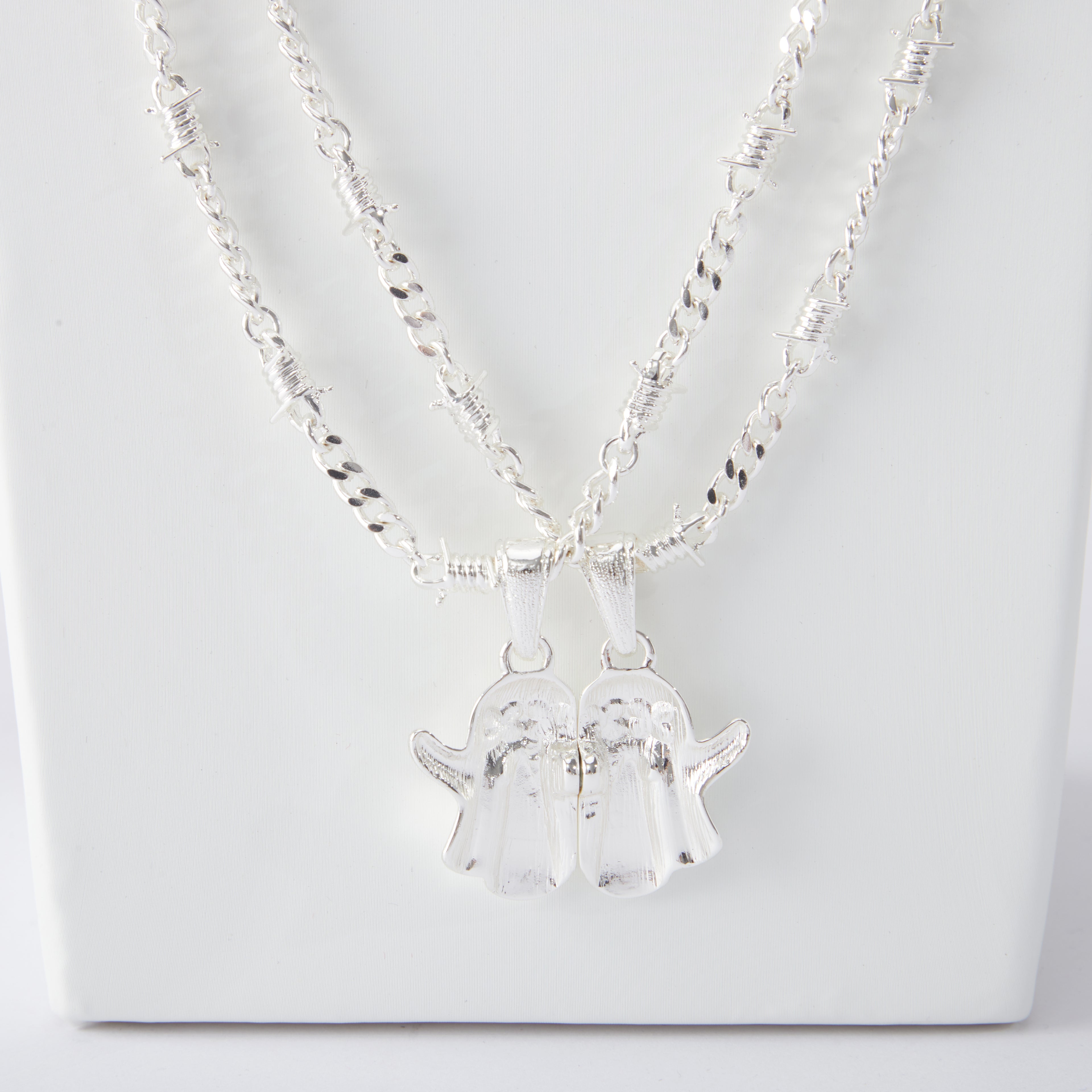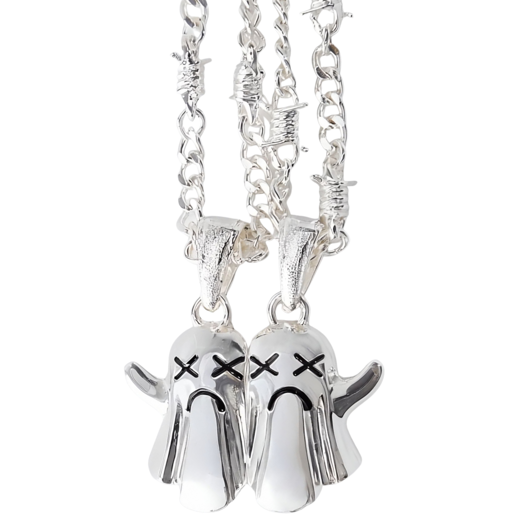 This set includes two Twin Paranormal ghost necklaces featuring an exclusive double-frown face logo created just for this drop. These ghosts may look sad, but they’re still pulled toward each other thanks to hidden magnetic backs that let them connect when they’re close.